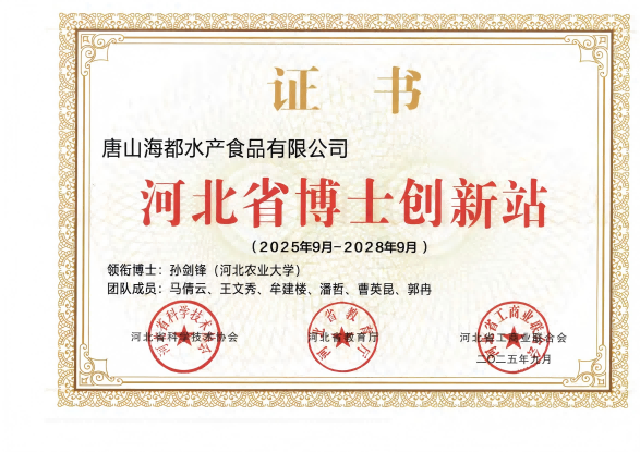 近日,河北省科学技术协会、河北省教育厅、河北省工商业联合会联合印发了《关于公布2025年河北省博士创新站建设项目认定结果的通知》,河北省食品学会联合唐山海都水产食品有限公司申报博士创新站建设项目获批。